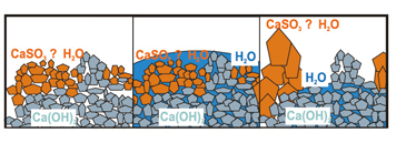 部分溶液中的CaSO3與溶于液滴中的氧反應,氧化成硫酸鈣