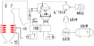 還原劑通過安裝在CFB鍋爐分離器入口或屏式過熱器區域的噴嘴噴入爐膛,還原劑與煙氣混合發生化學反應。