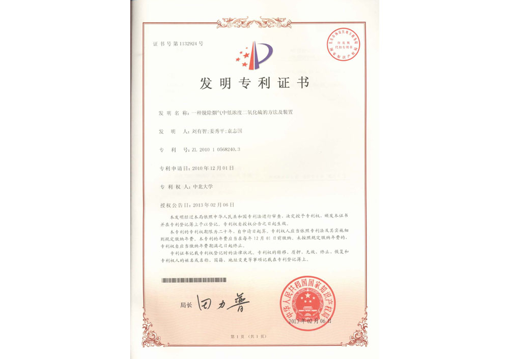 • 一種脫除煙氣中低濃度二氧化硫的方法及裝置